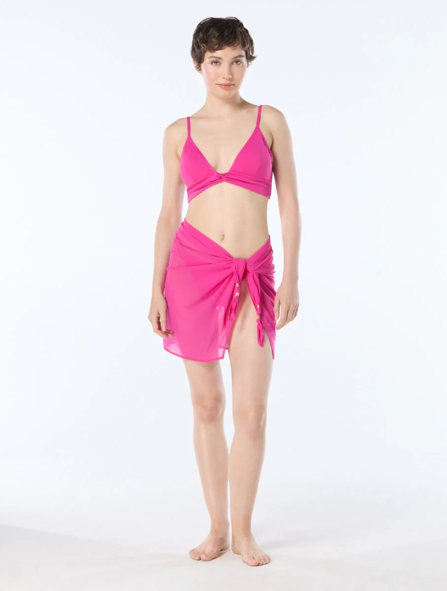 For an every day beach essential, this short pareo is perfect to throw over any swimsuit. Mesh fabric is lightweight and breathable. Bead trim on the side ties offer a touch of luxe.