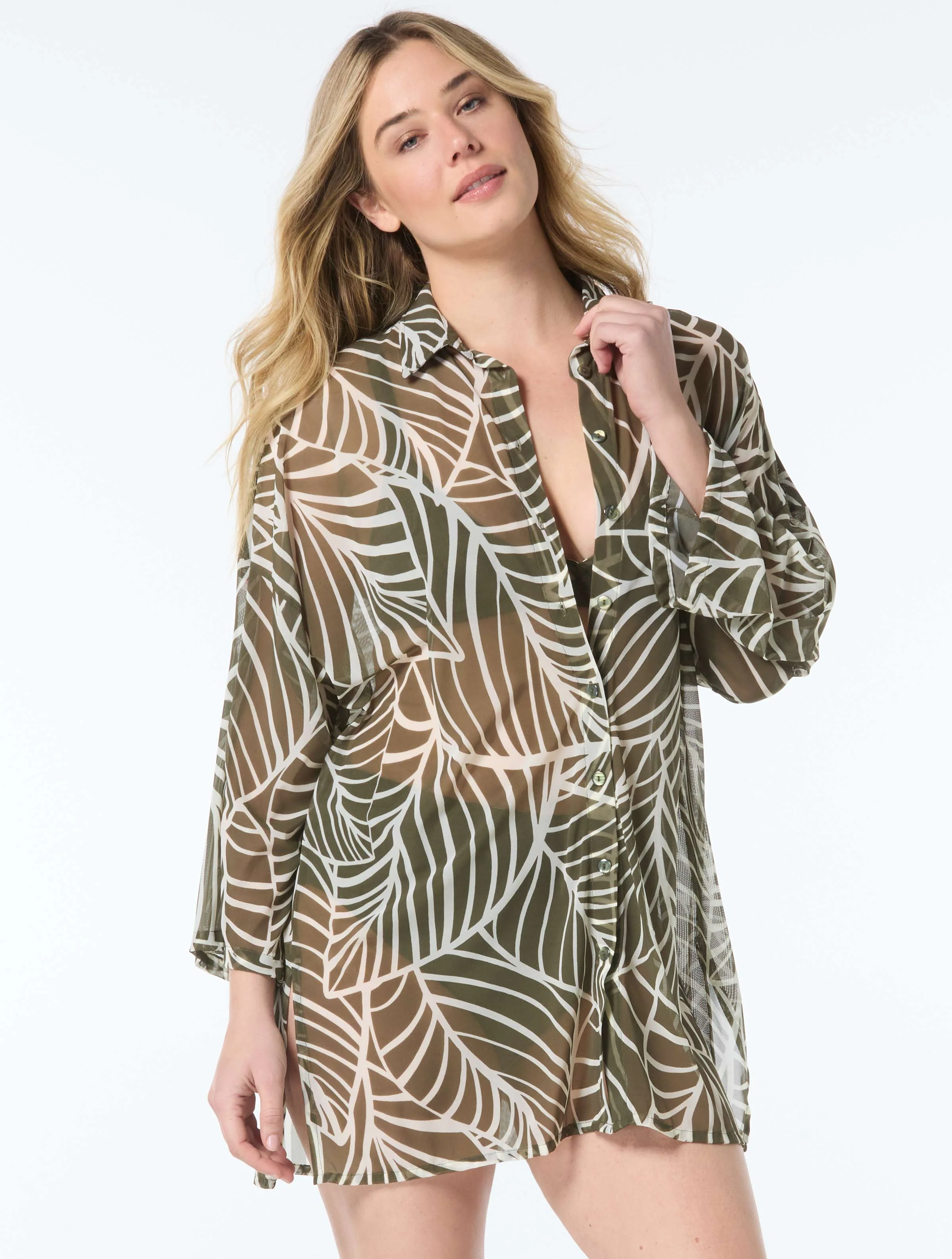 Coco Reef Divinity Button Up Cover Up Shirt - Graphic Palm