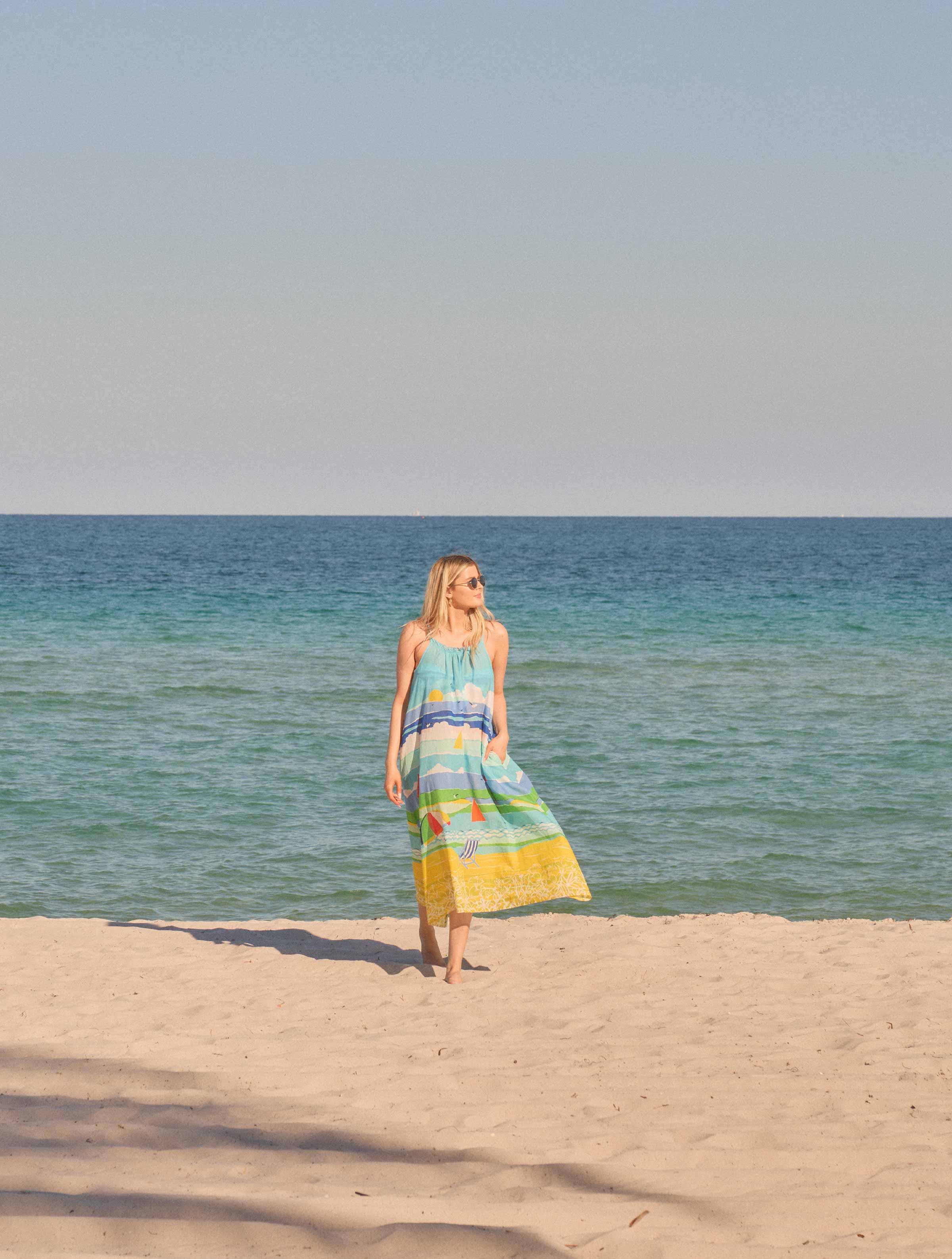For the fashion maximalist, this maxi cover up is made for you. Lightweight and packable, throw it in your suitcase and throw it over your swimsuit for effortless elegance. An allover summer print gives an ode to the perfect beach day.
